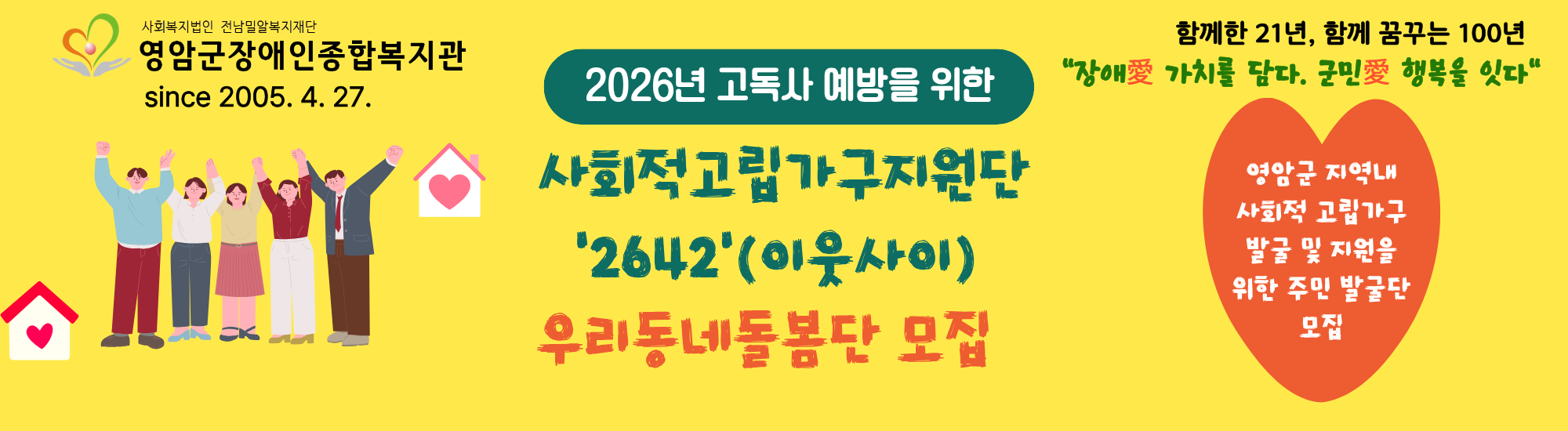 2026년 고독사 예방을 위한 사회적고립가구지원단'2642'(이웃사이) 우리동네돌봄단 모집